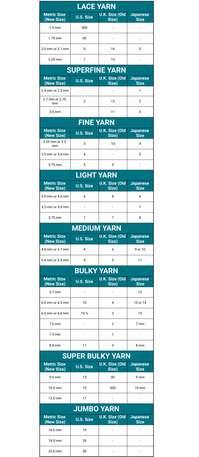Knitting Needle Sizes Conversion Chart Recommentation For Beginners